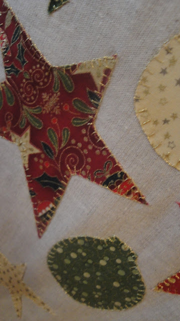 El festón esta hecho a mano, con hilo dorado y la verdad, para Alicia ha sido todo un suplicio, porque el hilo ¡tiene tela!!, se deshilacha y no ha resultdo fácil trabajar con él.