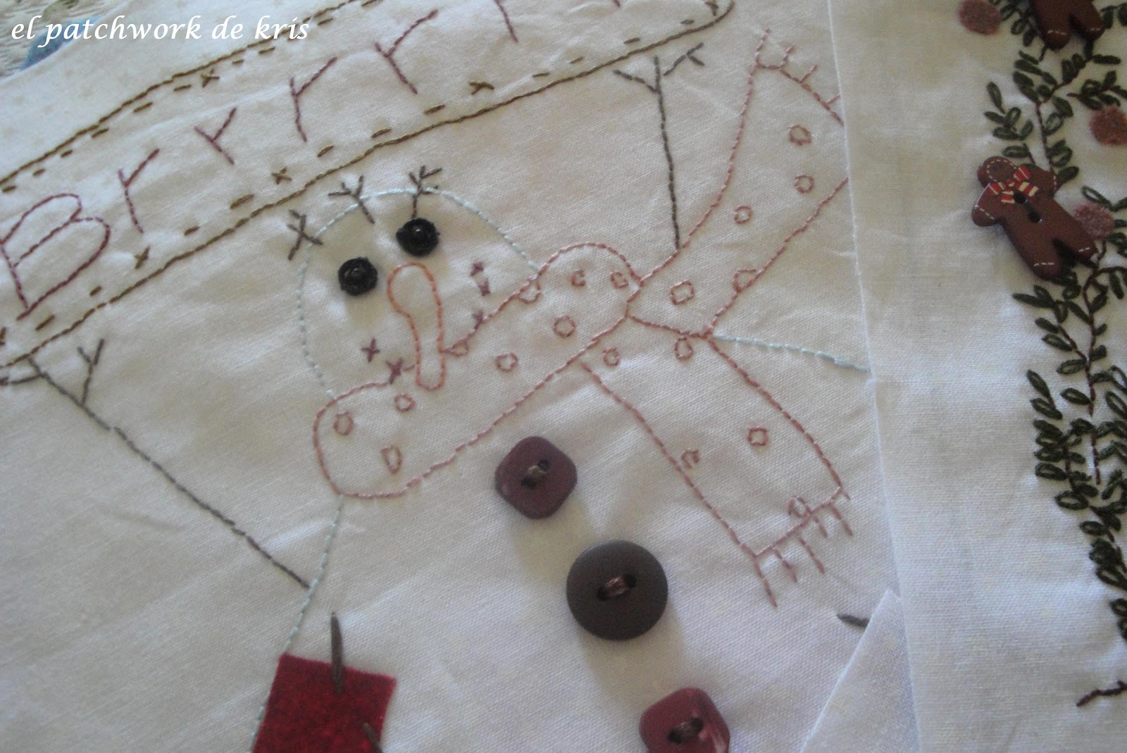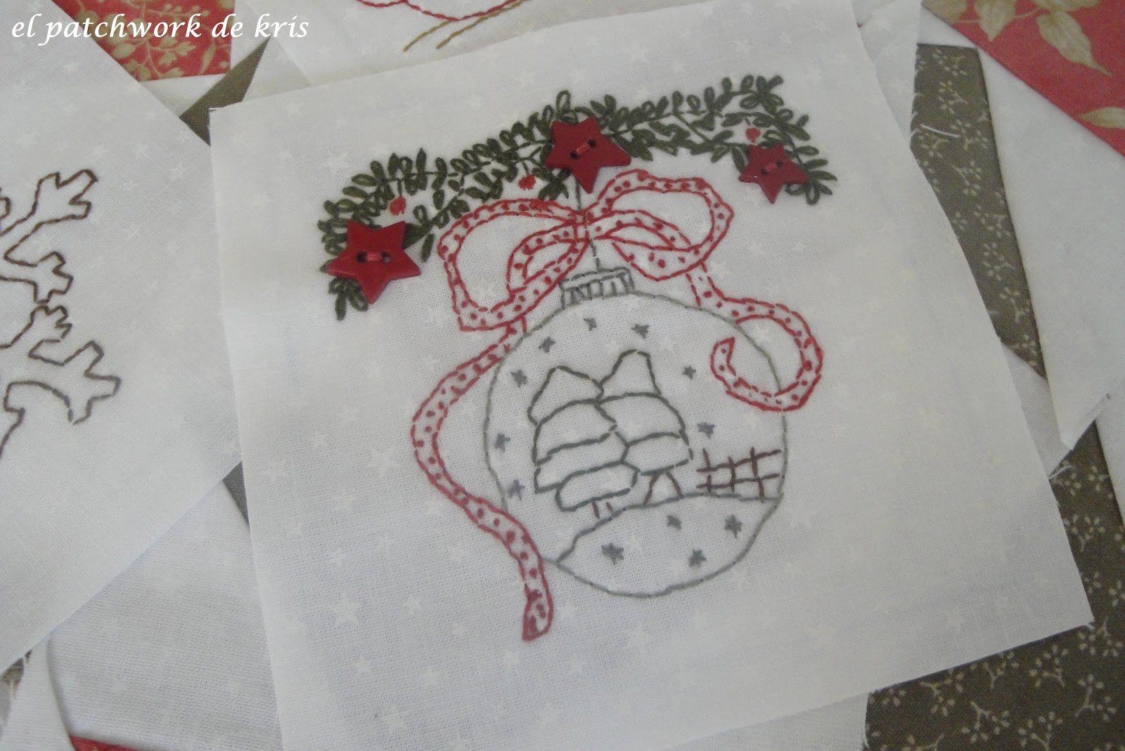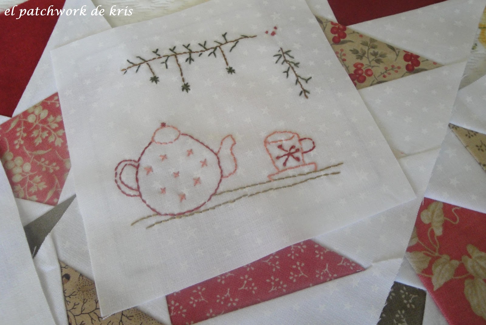 Este bloque es de los más trabajados, aprendí el punto de bordado de las hojas gracias a Dori, y lo que en un principio me pareció super complicado, después fué coser y cantar!!,
