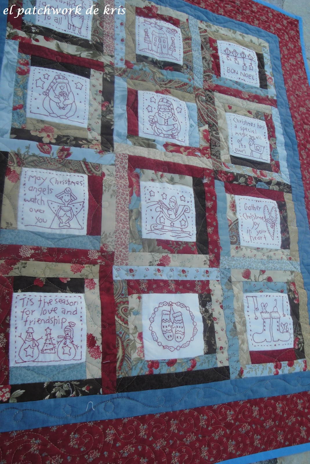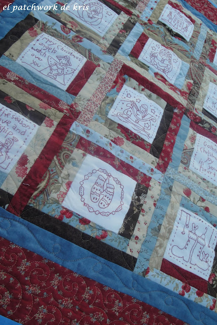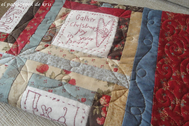 Y aprovechando que tenia que enviarle a Rosa Maria, de ARMONIA PATCHWORK unos trabajos para acolchar, y en vistas de que yo no le metía mano, se lo incluí en el envío, y este es el resultado,