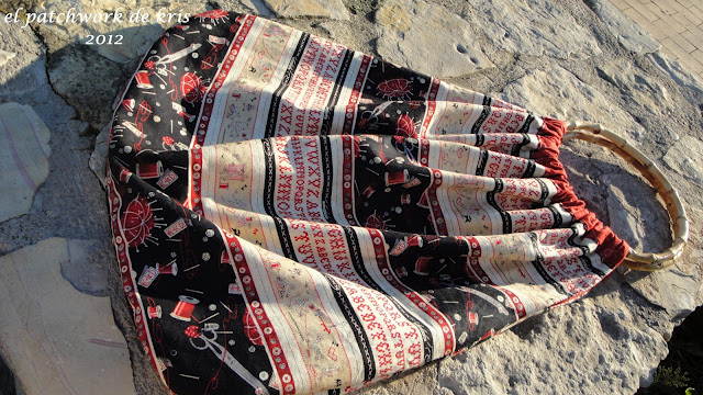 que mas pequeño no me serviría, con lo cual utilice una telita con motivos de costura...