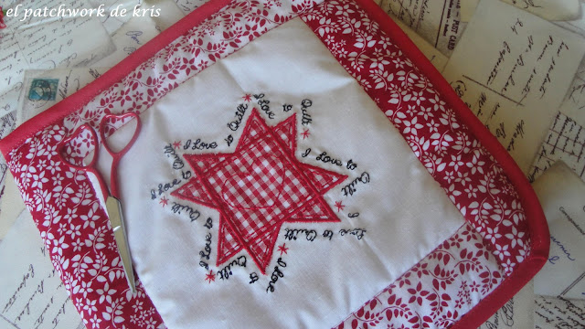 un fantastico "biscornu" de Gema, su estuche guardahilos y los bordados!!!