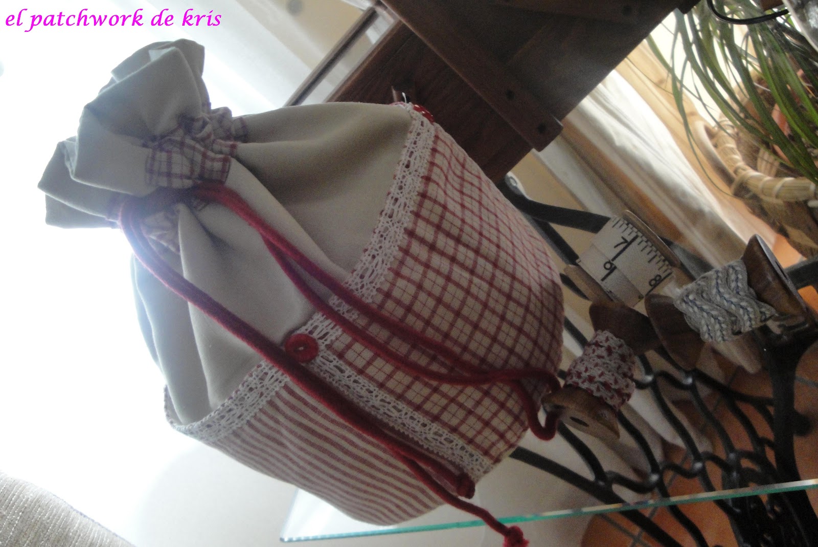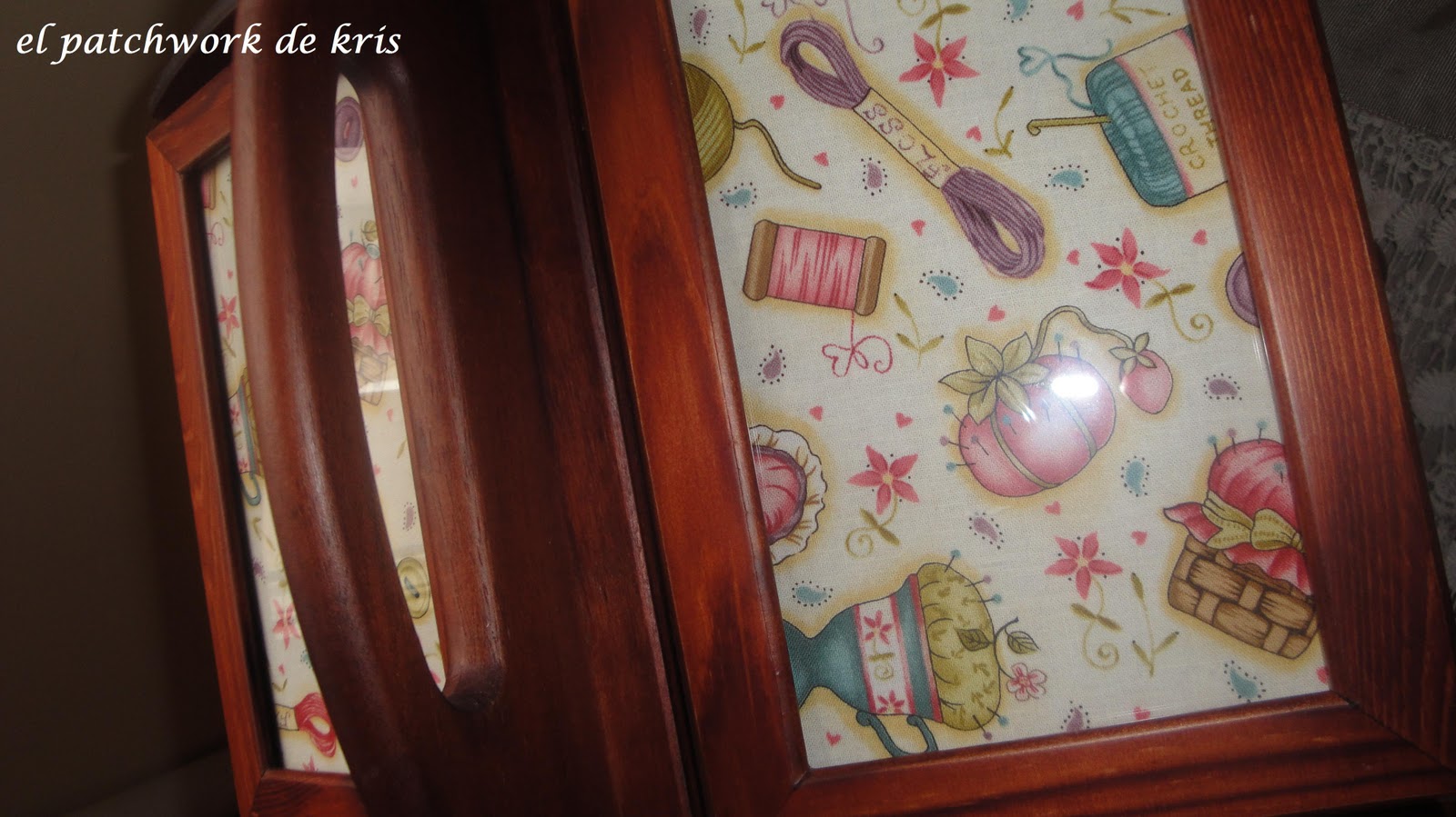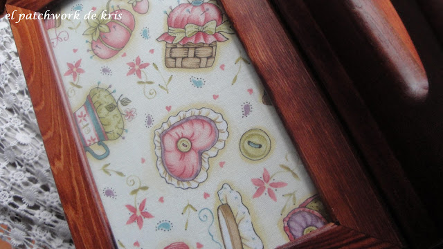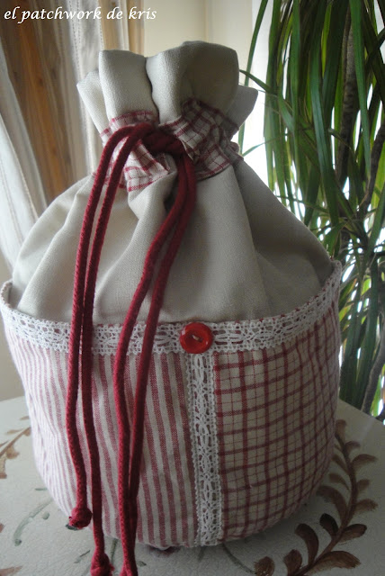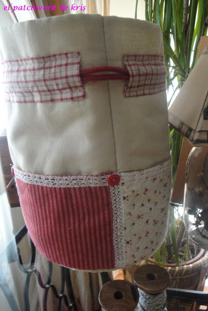 Es un kit que compré en un encuentro de bolillos y patchwork hace algunos meses, ¡¡bastantes!!! y que empecé y deje a medias y ahora ha llegado el momento de terminarlo... también he de decir que se lo ví a mi vecina Silvia en otro tono, en azul y me encantó!! así que claro... siendo socia del "club culo veo culo deseo.." tenia que conseguirlo para mí... jajajjajaj